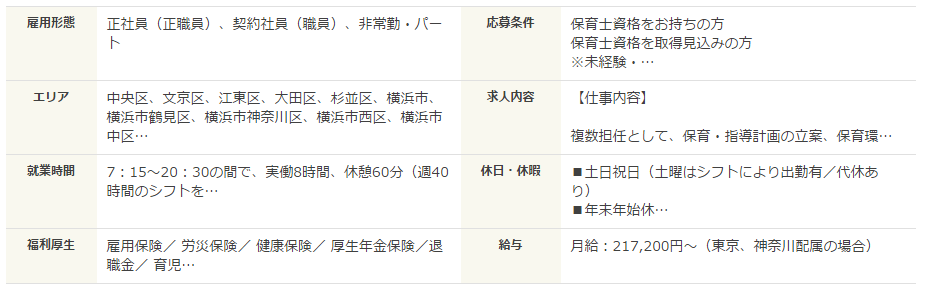| 対応職種 | 保育士、幼稚園教諭、学童指導員、調理師、栄養士、看護師 |