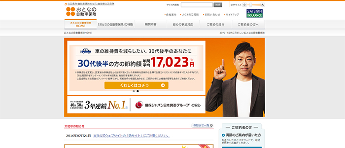 7位. おとなの自動車保険(セゾン自動車火災保険)(自動車保険料比較ランキング 7位)